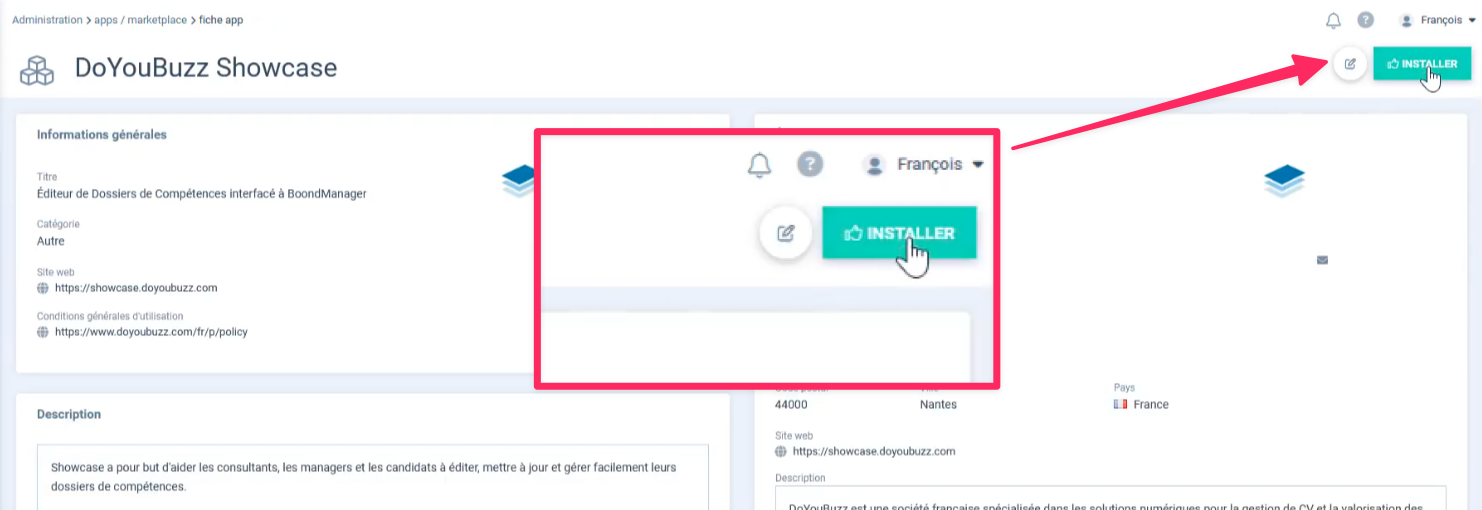 1. Installation de l'App Showcase sur votre compte BoondManager
